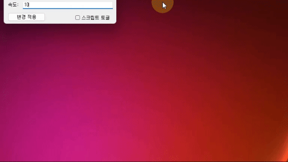 왼클릭을 누르고있으면 설정한 속도대로 마우스가 알아서 내려간다.